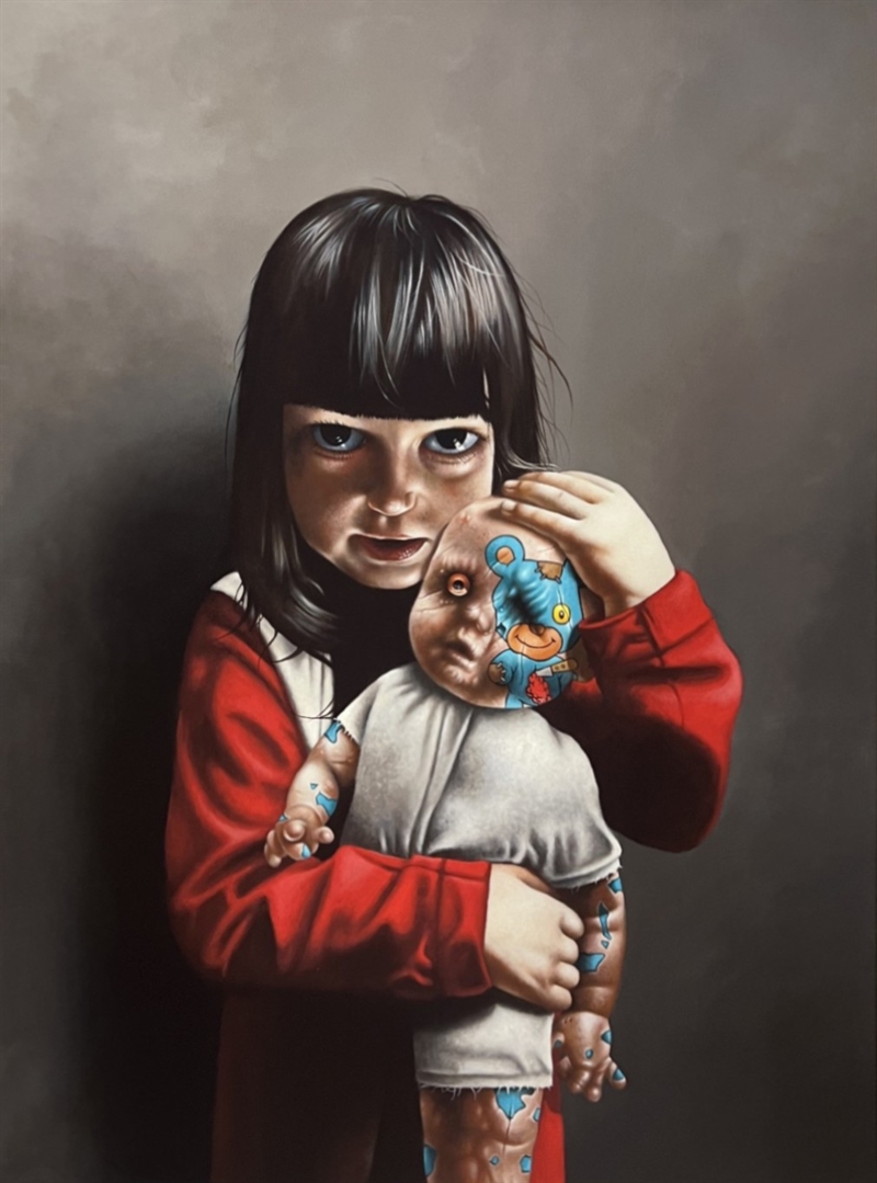 Den afdæmpede, grå baggrund giver motivet en tung og stille stemning, hvor fokus udelukkende ligger på relationen mellem barnet og dukken. Værket spiller på kontrasten mellem uskyld og forstyrrelse, kærlighed og besiddelse, og inviterer beskueren til at reflektere over barndommens skrøbelighed – og de spor, verden allerede har sat.